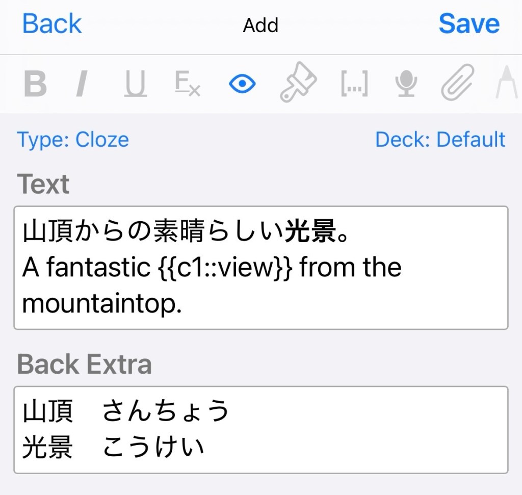 This is an example Cloze-format card I made: