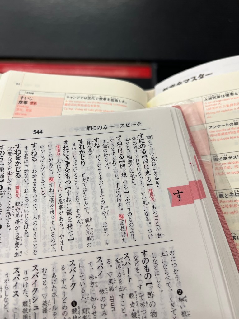 I, on the other hand, have two books open and cramming vocabulary (photo above). This has been my life for the past five or six months.
