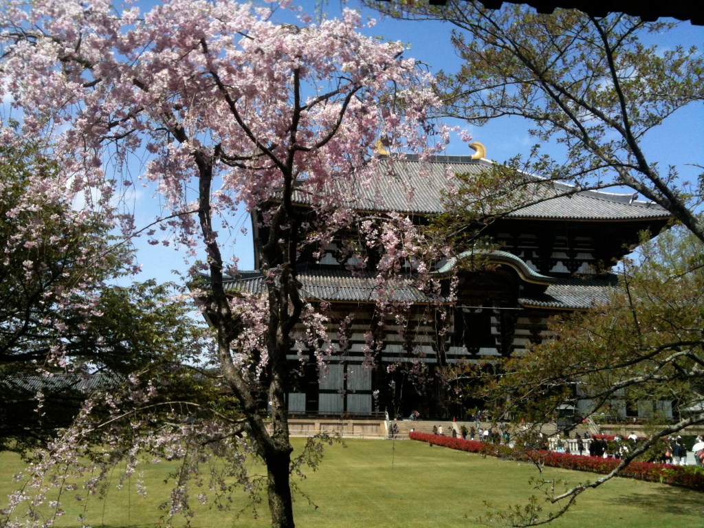 Usually, we go visit the cherry blossoms at the University of Washington at this time of year, but I have been to Japan once (in the old capitol of Nara, no less!) to see the cherry blossoms there in 2010.1 This is a photo of the famous Todaiji temple: