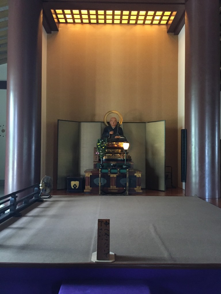 Each side of the altar is flanked by a statue: one of Honen, the founder of Jodo-Shu Buddhism, and the other (not shown) of Chinese Pure Land Master, Shan-dao (善導 613 – 681), whom Honen was inspired by: