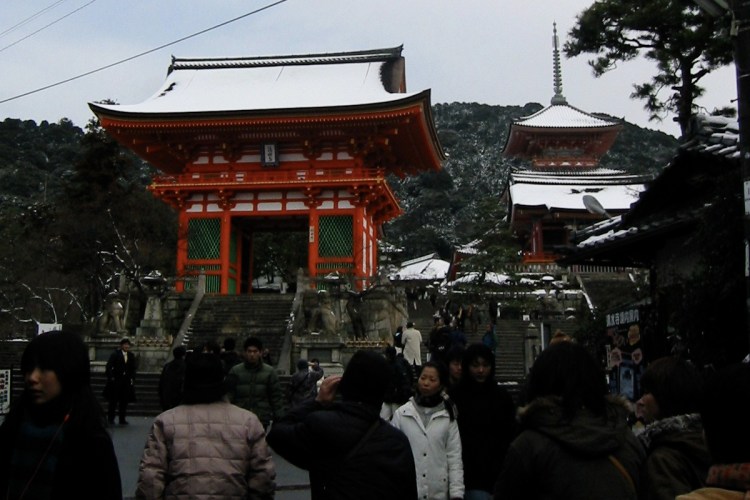 In any case, my first trip to Japan was way back in January 2005 shortly after my wife and I got married, and we went to visit her family, and see take a tour of Japan. The first Buddhist temple I visited was the venerable Kiyomizu-dera (清水寺), a very old temple of the once-powerful Hossō (Yogacara) sect in Kyoto, Japan. This is the front entrance as I recall it:
