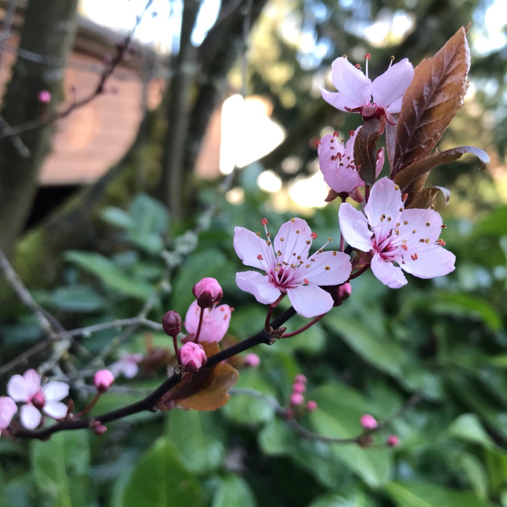 The Thundercloud plum trees in our yard finally blossomed, starting with the pink one:
