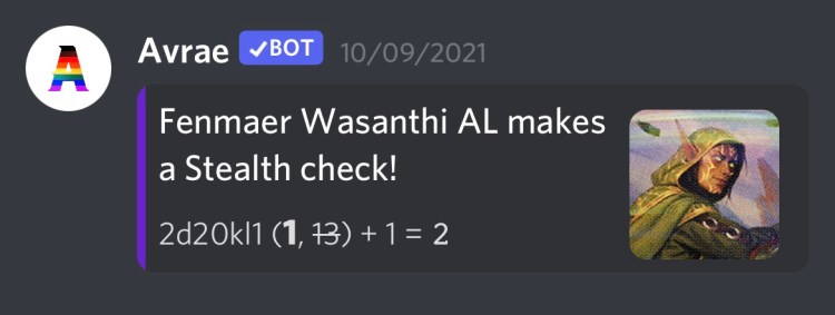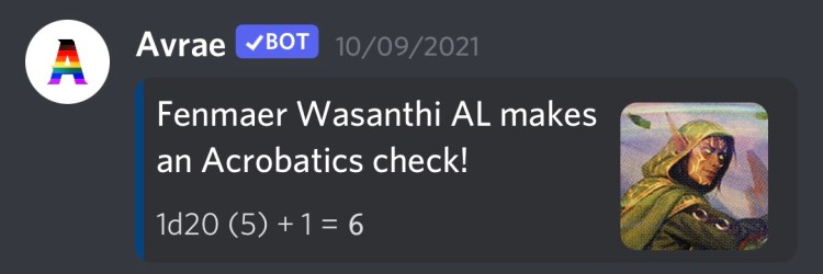 Finally, the Avrae bot really makes PBP work. It takes a while to get used to the commands, and you should have a command cheatsheet bookmarked somewhere.