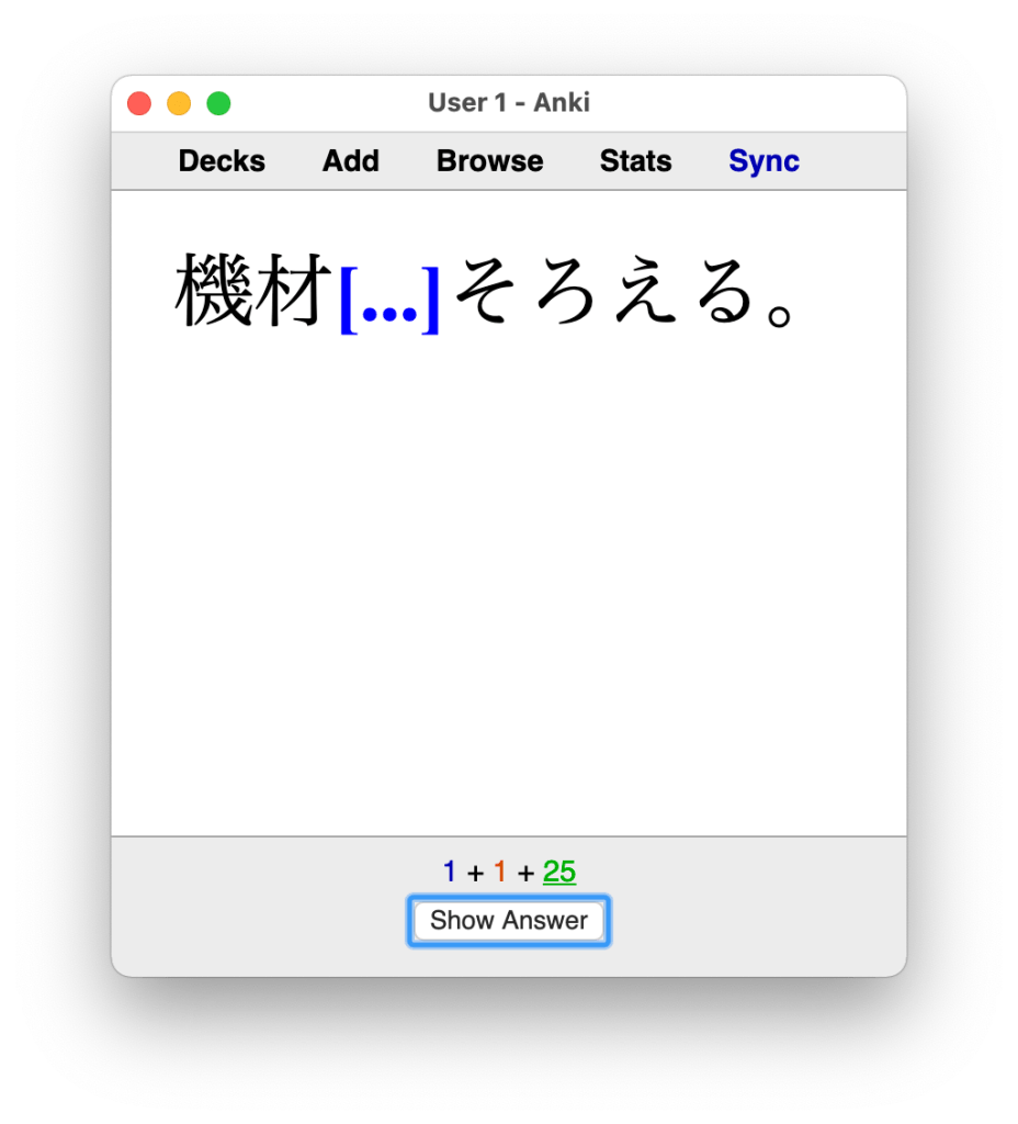 So, using this vocabulary source book, I have been gradually building up vocabulary in Anki SRS. For most of the words, I’ve been making Cloze style cards: