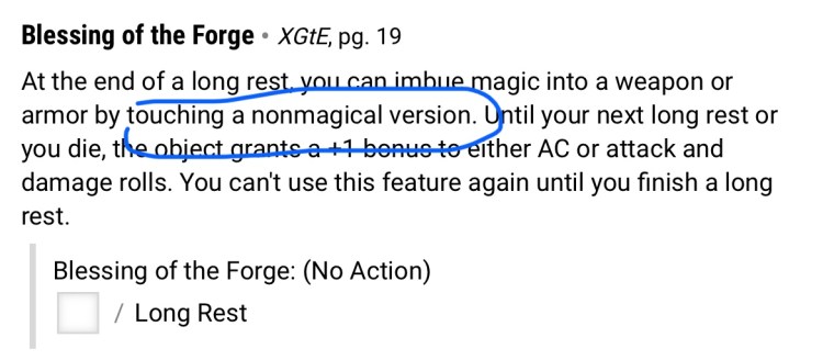 2 Blessing of the Forge ability doesn’t work on magic armor or weapons, so if you get a +1 armor, you can’t enchant it anymore. It will end up with the same Armor Class anyway, but just be aware.
