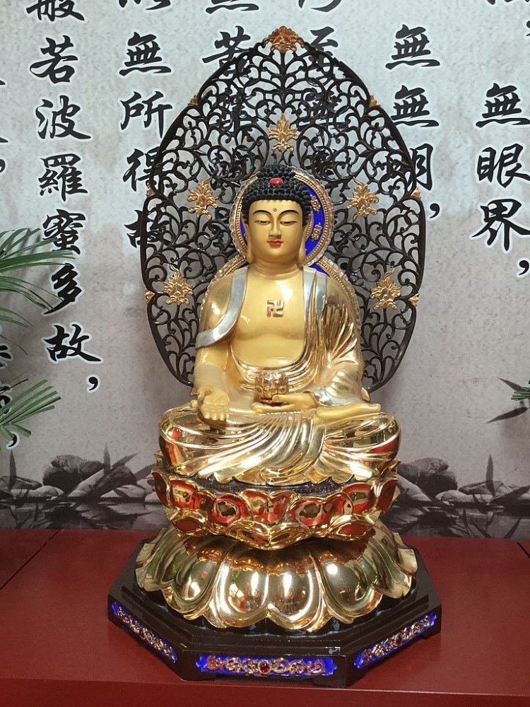 This symbol, a swastika, has NO RELATION to the Nazi Germany symbol in any way. However, at first glance this can be very confusing: why do Buddhist statues have swastika on them?