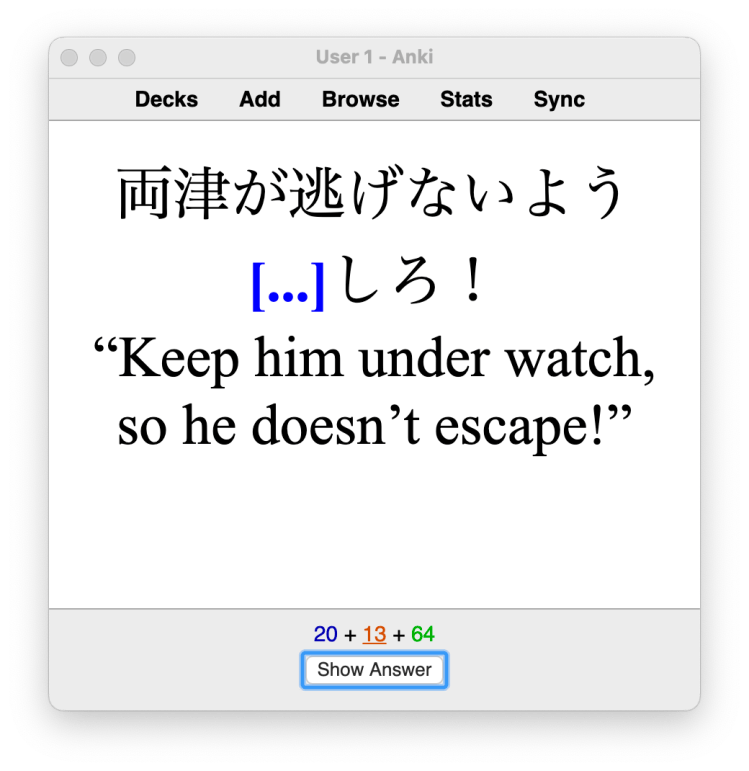 Ultimately, your success in the JLPT lies in two basic skills: reading Japanese, and listening to Japanese conversation. The vocabulary helps to read, but I found that with my Anki flashcards, it tended to focus a lot on recall (e.g. “do you remember how to say a word in Japanese?”), not recognition (e.g. “do I remember what this means when I see it?”). This first one doesn’t help with reading very much, the second one does. Since Japanese uses so much kanji, you’re ability to recognize words smoothly makes the process of reading so much easier. The issue with recall I found was that there were many different, overlapping words for the same thing, and trying to remember which word was which wasn’t worth the effort. I just want to be able to read well. Further, recall didn’t help me know the context words are often used in.