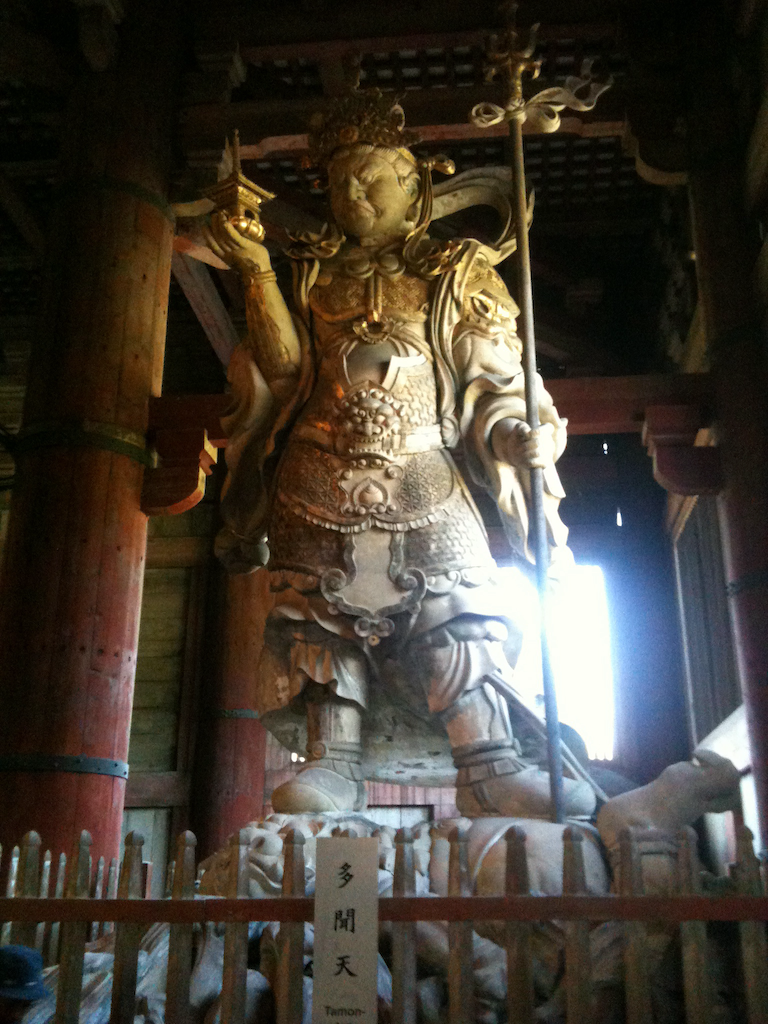 2 Vaiśravaṇa, known in Japanese Buddhism as Bishamonten (毘沙門天), can be seen at the famous temple of Todaiji in Nara. I took this photo back in 2010 when visiting there.