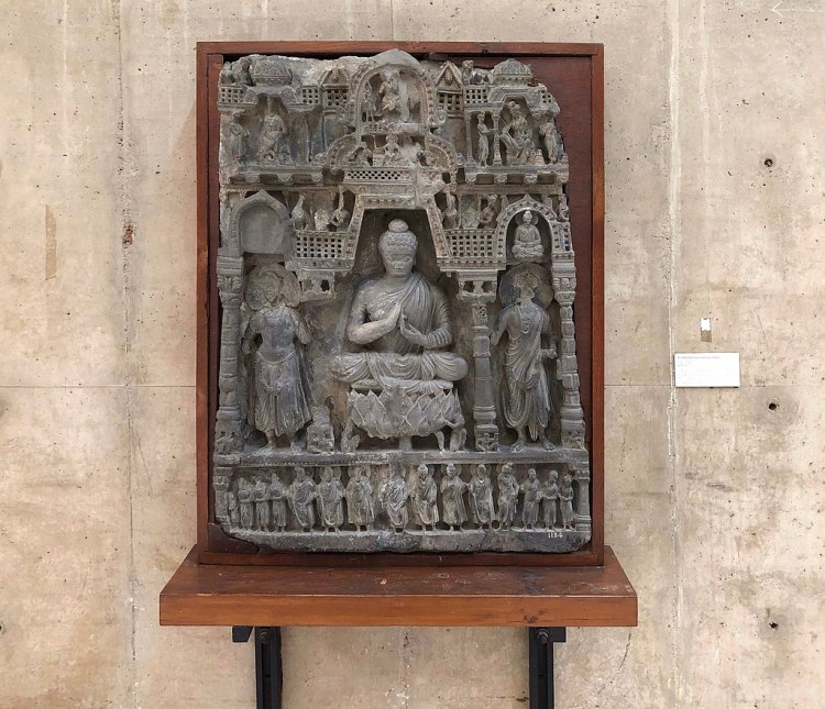 A 2nd-century Gandharan sculpture depicting Amitabha Buddha preaching from the Pure Land, UnpetitproleX, CC BY-SA 4.0, via Wikimedia Commons